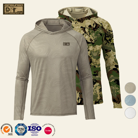 Felpa con cappuccio a manica lunga da uomo personalizzata a 4 vie elasticizzata a maniche lunghe ad asciugatura rapida e prestazioni di protezione solare per la caccia